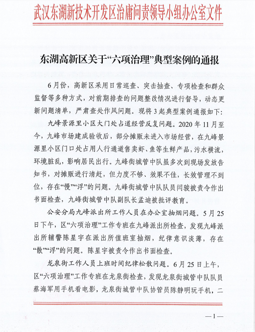 東湖高新區關于“六項治理 ”典型案例的通報